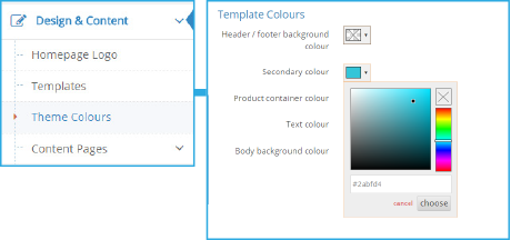 | A | You can change the colour of the header, footer, menus, category/brand results, product container, text and site background. |